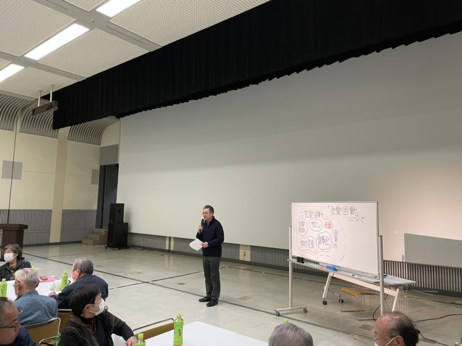 今回の研修会は、知多市老人クラブの友愛活動の取組みについて、各単位クラブでの活動(友愛訪問、老人クラブ主催のサロン、おひとり様対応、見守り活動等)の取組みについて情報交換を行い、友愛活動の取組み強化につなげていくものです。